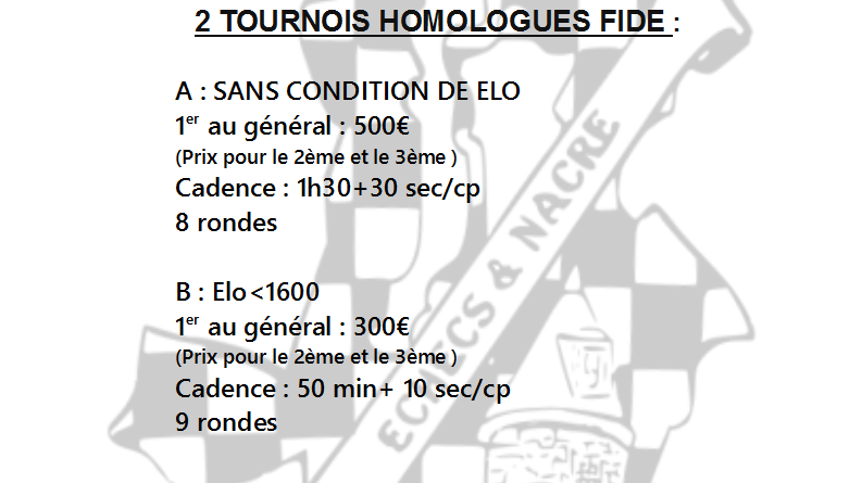 Demain mardi, les joueurs du tournoi B devront se munir de vitamines avec 3 rondes (même rythme qu’une journée de Coupe Loulou). Les joueurs du tournoi A joueront quant à eux 2 parties.